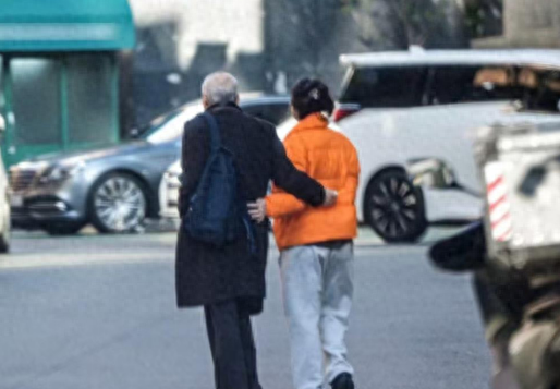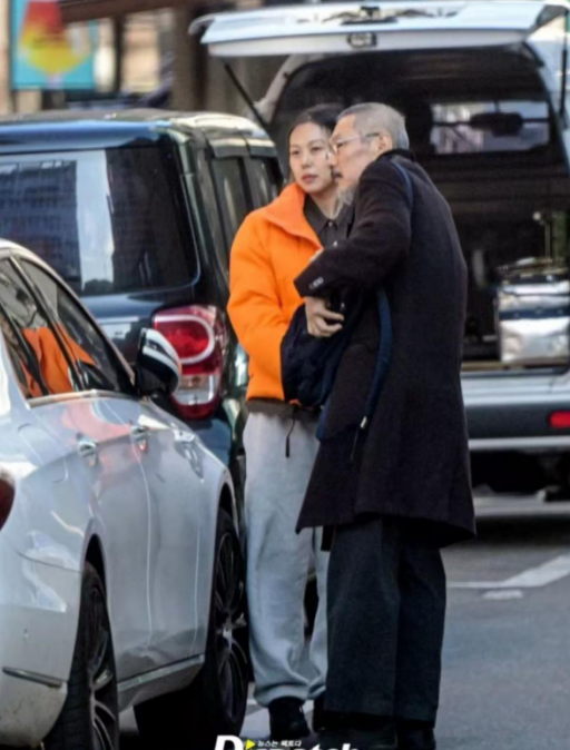 照片里,金敏喜素颜,穿着宽松,和头发花白的洪尚秀互相搀扶,画面……一言难尽。